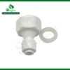 Three-way valve: 1 inner threaded end with a diameter of 21mm, 1 outer threaded end with a diameter of 21mm, and 1 quick connect end for a 10mm tube.